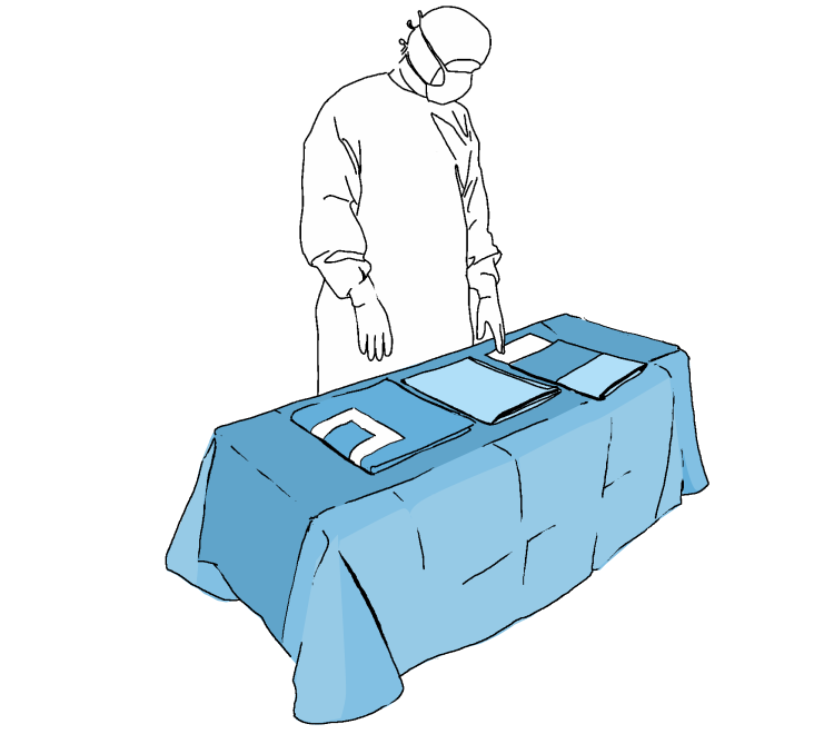 Прежде чем разложить простыню на пациентке (разграничение операционного поля), следует обратить внимание на символы, указывающие в каком направлении следует раскладывать простыню.