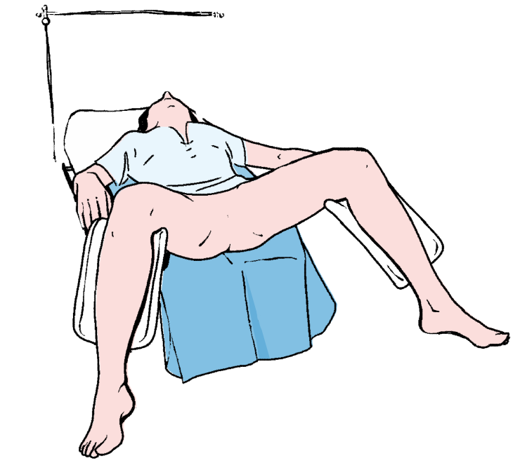 Меньшую салфетку размещаем под ягодицами пациентки, расположенного в гинекологической позиции.