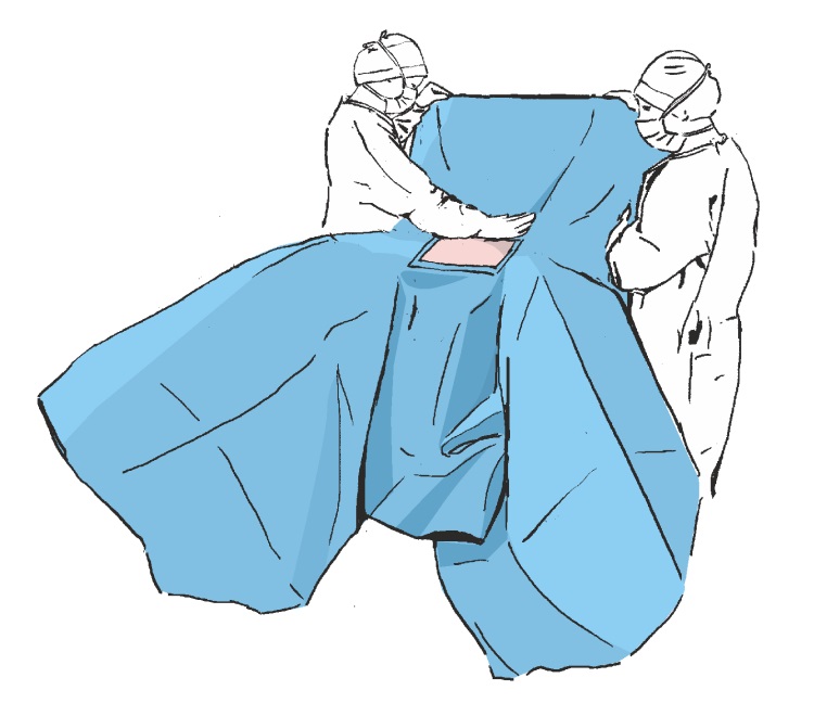 Прежде чем разложить простыню на пациентке (разграничение операционного поля), следует обратить внимание на символы, указывающие в каком направлении следует раскладывать простыню.