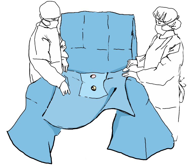 Меньшую салфетку размещаем под ягодицами пациента, расположенного в урологической позиции.