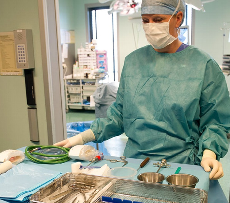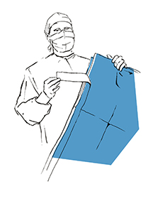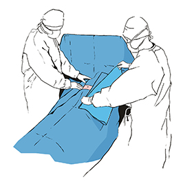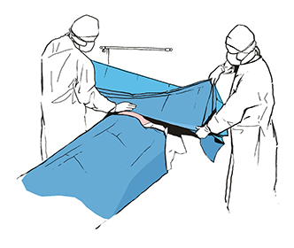 Крепим боковые простыни, обозначивая границы операционного поля.