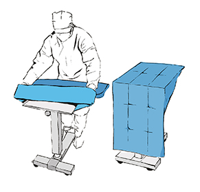 Простыню, в виде чехла с манжетом, натягиваем на столик Mayo.